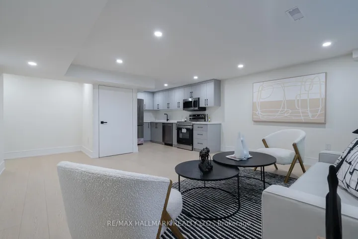 +"PublicRemarks": "*** Experience the perfect blend of timeless luxury and modern living! This fully renovated 2-storey masterpiece in prestigious Bathurst Manor combines comfort, elegance, and functionality from top to bottom. Every inch has been thoughtfully upgraded with premium finishes and smart home technology, creating a lifestyle of sophistication and convenience.* Interior Highlights: Open-concept layout filled with natural light & skylight + around 9-ft ceilings + Elegant glass railings + Private office on main floor + Designer tones & luxurious flooring throughout.* Gourmet Kitchen: Custom cabinetry with under-cabinet lighting + Quartz countertops & oversized island + High-end stainless-steel appliances.* Bedrooms & Bathrooms: 4 spacious bedrooms with custom closets + Primary suite with walk-in closet & spa-inspired ensuite + Fully upgraded modern bathrooms.* Living & Entertainment: Bright family room with electric fireplace + Open living & dining areas ideal for gatherings + Custom TV feature wall.* Outdoor & Parking: Private backyard with large deck, aluminum-glass railings & natural-stone front porch + Garage + 5-car driveway + Mudroom with built-ins + EV plug & remote garage door.* Lower Level Income Potential: LEGAL basement with two one-bedroom suites (one legal), each with separate entrance, ensuite laundry & cold room perfect for rental income or multi-generational living.* Smart & Mechanical Features: 5 exterior cameras + Smart intercom & keyless entry + Central vacuum + Ceiling speakers + Smart thermostat + Brand new Furnace, A/C & Hot Water Tank (all owned).* Prime Location: Steps to TTC, Yorkdale, York University, Allen Rd & Hwy 401. Close to top schools, shops & parks.*** Move-in ready, top-to-bottom luxury renovation with legal basement suite *** this showstopper wont last long!"