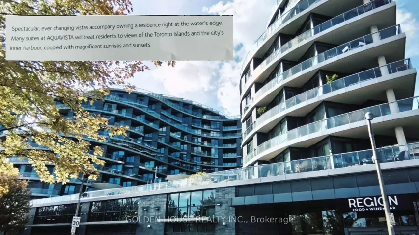 +"PublicRemarks": "Welcome to Aquavista at Baysidea rare waterfront residence offering unobstructed Lake Ontario views. This thoughtfully designed one-bedroom suite features floor-to-ceiling windows and two walk-out balconies from both the living area and bedroom, creating a seamless indoor-outdoor lifestyle. The efficient open layout includes a stylish kitchen with integrated stainless-steel appliances, a spacious walk-in closet, and a large laundry/storage room-an uncommon luxury in a compact floor plan. Residents enjoy a LEED Gold certified building with complimentary high-speed fibre internet, 24-hour concierge, fitness centre, sauna, pool, rooftop terrace, media and party rooms. Steps to Sugar Beach, Sherbourne Common, and the waterfront promenade, with easy access to TTC, Union Station, and the Gardiner Expressway. Experience lakefront tranquility while remaining minutes from downtown Torontos vibrant core."