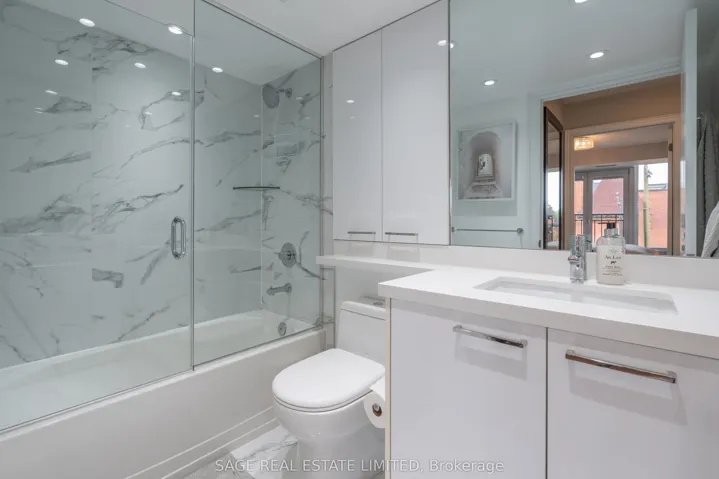 +"PublicRemarks": "A thoughtfully renovated 1-bedroom + den condo at The Europa Lofts, a quiet, boutique low-rise building. Built in an era when thoughtful layouts and generous room sizes were the standard. A complete renovation has transformed the property into an inviting, modern space. The all-white kitchen features stainless steel appliances, quartz countertops, ample cabinet storage, and a breakfast bar. The open layout comfortably accommodates a proper dining area and living room, while two Juliette balconies overlooking College Street provide fresh air, and added charm. The den is currently configured as a walk-in wardrobe but can easily be converted into a home office or flex space. The large bedroom includes a walk-in closet and comfortably fits a king-size bed with room to spare. Parking and locker are included. Located in a highly sought after pocket, this condo is within walking distance to College Street's best restaurants, cafés, and shops, with convenient access to transit and grocery stores."