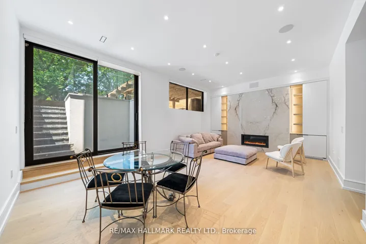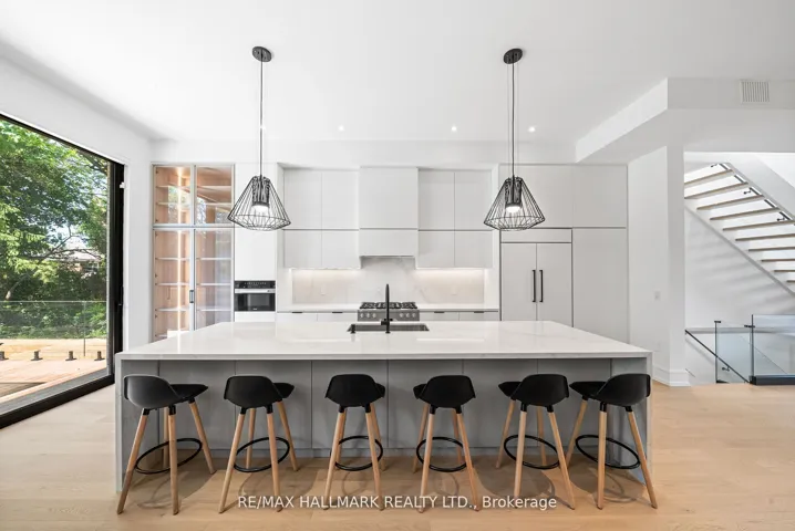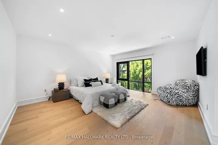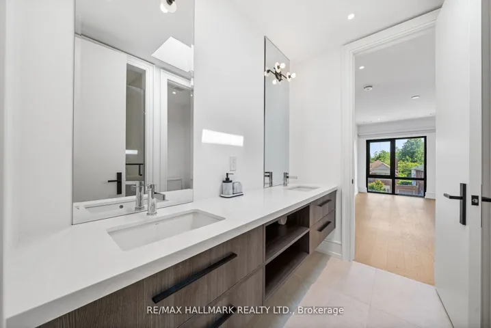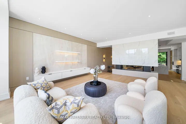 Location, location! Tucked away in a quiet, highly accessible, and private pocket of Leaside, this is by far one of the most uniquely designed homes in Leaside, featuring a layout that blends flow, function, and style across over 4,800 sqft of luxurious living space and checking every box. The main floor features soaring 10 foot ceilings, a chef inspired kitchen with an oversized island that seats up to eight, top of the line Miele appliances, and a walkout to a large deck perfect for entertaining. Beautiful white oak hardwood floors and sleek glass railings run throughout the home. Upstairs, youll find four oversized bedrooms, each with direct access to a bathroom and generous closet space. The primary bedroom includes a stunning 7 piece ensuite with heated floors and a large walk in closet with a skylight. The basement spans two levels: the upper portion includes a spacious recreation area and a nanny suite with a 5 piece ensuite, while the lower level features a theatre room or music studio and a 4 piece bathroom. The basement also features a wine display, radiant heated flooring, built in speakers, a separate entrance, and a walkout. A rare double car garage, hard to find in Leaside, is complemented by a full snow melt system covering the driveway, front porch, steps, side path, backyard, and basement walkout, eliminating winter maintenance worries. Additional features include a Control4 smart home system, electric blinds, designer lighting with dimmers, exterior lighting, a sprinkler system, gas fireplaces, skylights, and laundry on two levels. This home truly stands out in one of Torontos most desirable neighbourhoods. Ideally situated just steps from Bayview Avenue and Eglinton Avenue East, this location offers easy access to some of the areas top schools, including Northlea Elementary and Middle School, Bessborough Drive Elementary and Middle School, Park Lane Public School and Leaside High School.