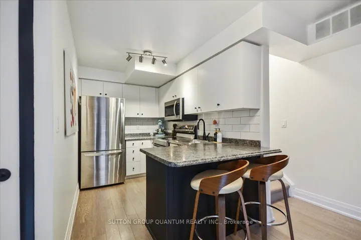 +"PublicRemarks": "A Rare Find in the Heart of Downtown Toronto. Discover The Central at 415 Jarvis Street - a quiet, contemporary townhome community tucked away in one of downtown Toronto's most vibrant neighbourhoods. This beautifully updated 2-bedroom, 2-bath home, complete with owned underground parking and a storage locker is the only townhome in C08 offering this combination of features under $590K!. Thoughtfully designed and completely turnkey, this bright, spacious residence offers one of the largest layouts in the complex (approx. 850 sq. ft. + 215 sq. ft. private rooftop terrace with incredible skyline views). The modern kitchen features stainless steel appliances, tiled backsplash, sleek countertops, and full-sized cabinetry - perfect for everyday cooking or weekend entertaining. Freshly painted and showcasing newer flooring and updated bathrooms, the home's warm, contemporary aesthetic creates an inviting space that feels immediately like home. Enjoy cozy evenings indoors or step up to your private rooftop terrace for barbecues, evening cocktails, or quiet moments overlooking the city skyline - complete with a direct gas hookup and no worries of ever running out of gas. With two generous bedrooms, a rare main-floor bathroom, and smartly upgraded finishes throughout, this home is the perfect balance of downtown energy and tranquil comfort. Located steps from Church Street Village, Yonge Street, Toronto Metropolitan University, the Financial District, and TTC/Subway access, this address places you in the centre of it all - yet just removed enough to enjoy peace and privacy. A truly rare opportunity to own a move-in-ready townhome in downtown Toronto at an unbeatable value."