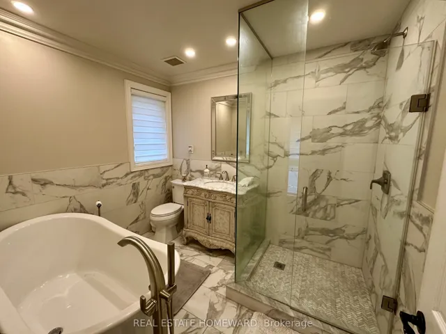 +"PublicRemarks": "Completely transformed with meticulous renovations and significant investment throughout, this home sits on a rare oversized double lot of over 775 m (approx. 8,340 sq.ft.) in the heart of Victoria Village. The property combines modern design with elegant cornice moulding on both main and second floors, offering a refined and spacious living environment. Originally a 3-bedroom home, it has been converted to a generous 1-bedroom layout for open-concept living and can easily be converted back. The backyard oasis showcases extensive high-end professional landscaping, featuring a heated saltwater inground pool, hot tub, two garden sheds, extensive lighting, multiple patio areas, and a built-in Napoleon BBQ-all with no rear neighbours for ultimate privacy. The home includes hardwood floors throughout, upgraded wood staircases with wrought-iron pickets, premium Andersen windows, a newer roof, furnace, on-demand hot water, and an upgraded 200-amp electrical panel. The sun-filled main floor offers an open living, dining, and kitchen area plus a bright sunroom with two skylights, a gas fireplace, and a walkout to the backyard. The open-concept basement features large windows, a full bathroom, and versatile space for a recreation room, office, or guest suite. The luxurious primary suite includes a walk-in closet, an additional double closet, and a spa-like bath with a glass shower, porcelain floors, and a soaker tub. A fully insulated oversized double garage and large driveway provide ample parking and convenience. Rear yard access to Carnforth Road offers added flexibility and potential for future development opportunities."