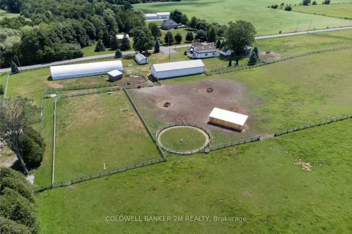 +"PublicRemarks": "Opportunity knocks with this exceptional turnkey property. Well-established, high-level horse boarding facility with instant income stream on over 61 acres of tranquility. Fantastic quiet location close to 401, 407, 115/35, shopping, schools, and all amenities.This spacious 2924 square foot home features 4 bedrooms and large principal rooms overlooking the farm. The sun-filled main floor is flooded with light and offers two walkouts. Enjoy a the large family kitchen with breakfast bar and pantry, a bright breakfast area, a cozy living room with fireplace, a huge family room with gorgeous vaulted ceilings, and a bright formal dining room. Main floor laundry adds convenience. Upstairs, a grand hallway and computer nook overlook the sprawling main floor. Retreat to a large primary bedroom complete with walk in closet, and spread out in two more bedrooms. The downstairs features a 4th bedroom, large rec area, utilities, and workshop. The property is awe inspiring, offering multiple pastures and large fenced paddocks with 3 horse shelters ('15, '17, '22). The property grows its own hay! A 30 x 90 ft 5-stall barn offers hay storage and wall-to-wall matting. This property also includes a 40 x 120 ft covered training arena, 100 x 200 ft outdoor riding arena, 60 ft round pen, 16 x 40 ft shop, and on-property trail. Upgrades include: barn siding '17, horse stalls '17, over 5,000 ft of wood fencing ('15'18). This gorgeous home has many recent updates including front door '23, patio French doors '23, roof (house & garage) '22, kitchen & appliances '21, flooring '22, bedroom window '19, paint '22, and lighting '22 plus so much more to see! EXTRAS See attached Features List and Floor Plan."