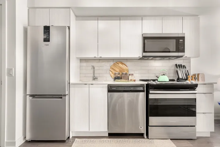 +"Inclusions": "All existing electrical light fixtures, window coverings, movable island, stainless steel fridge, stove, dishwasher & built-in microwave, stacked washer & dryer // MAINTENANCE FEES INCLUDE: 1.5 Gigabyte-Per-Second Home Internet & 2 Cable TV Boxes via Rogers Bulk Preferred Package with the building."
