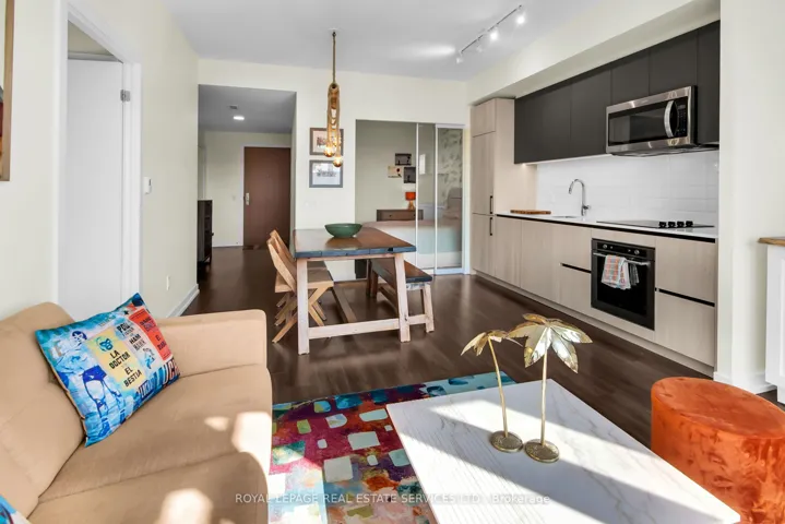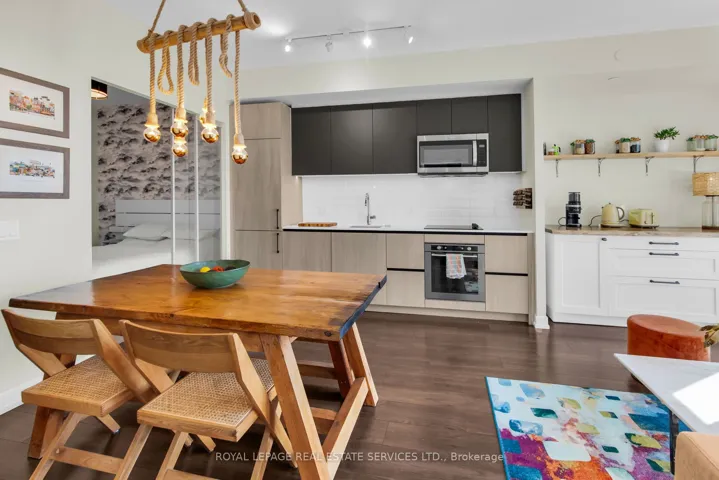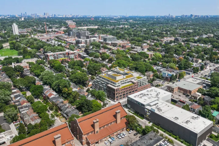 +"PublicRemarks": "In prime Leslieville, this unique unit was part of the recent conversion from the previously historic Weston Bakery. Featuring an exceptional layout with 2+1 bedrooms, 2 bathrooms & 856 interior Sq FT. The very bright living area includes floor to ceiling windows, a B/I bar for additional storage, custom electric blinds & walk-out to a south facing balcony. Modern kitchen with custom updated quartz countertops & separate dining area that is perfect for entertaining. Spacious primary bedroom (currently used as office) with large window, double closet & 4PC ensuite. The oversized den is a great addition with added wooden soundproof panelling, and is currently used as the media room. It is ideal for exactly that, an at home office, or 3rd bedroom. Full ensuite laundry room included with even more storage space, along with a large locker on the 4th floor & 1 underground parking spot. Excellently maintained building with great amenities such as, gym, rooftop deck, party/meeting room, concierge & bike storage. Steps to Queen St, parks, public transit & much more."