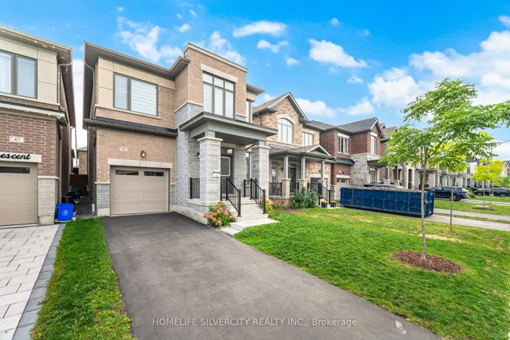 +"PublicRemarks": "Welcome to this beautifully upgraded detached home, offering 2,150 sq. ft. of bright and functional living space. With a striking stone façade and covered porch, this residence showcases impressive curb appeal. Inside, soaring 9 ft. ceilings on both the main and second levels, paired with oversized windows, fill the home with natural light. The open-concept main floor features a welcoming family room and a gourmet kitchen with quartz countertops. A separate basement entrance and approximately $50,000 in upgrades add exceptional value. Upstairs, spacious bedrooms provide comfort and privacy, designed with today's modern family in mind. Outside, enjoy a large, fully fenced backyard-perfect for entertaining or quiet relaxation. Ideally located near Heber Down Conservation Area, shopping, new schools, and offering quick access to highways and GO Transit, this home blends elegance, convenience, and lifestyle."
