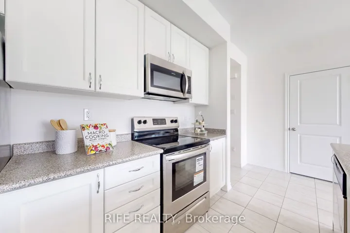 +"PublicRemarks": "Special End-units in the community (Approx. 1400 Sqft Above Grade), this stunning 3-bedroom townhouse feels like a model home and is loaded with premium upgrades. Enjoy all-hard surface flooring throughout including engineered laminate and solid hardwood stairs complemented by 9' smooth ceilings, designer light fixtures, and custom window coverings.The gourmet kitchen features shaker-style cabinetry extended all the way to the ceiling, composite undermount sink, upgraded stainless steel appliances, and an extended island with a breakfast bar perfect for entertaining.The open-concept main floor offers a spacious living and dining area with walkout to a balcony. Upstairs, the generous primary bedroom boasts its own private balcony, while the upgraded bathrooms with glass shower doors.Finished ground-level recreation space with direct access to the garage can serve as a home office, gym, or family room.Located in the desirable Duffin Heights community, close to golf, conservation areas, parks, public transit, and more. Low maintenance fees include parking, building insurance & common elements.Truly turn-key and move-in ready."