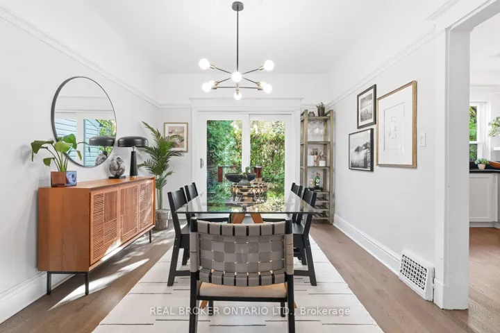 +"PublicRemarks": "A peaceful Beach home in a vibrant community. A rare blend of calm and energy, 7 Juniper sits quietly just minutes from the heart of the Beach. Pull into your parking pad, a luxury not every Beach address offers. Step up to an entryway that's more than a passage: this mudroom wrapped with floor-to-ceiling windows offers room to store your shoes and hang up your coats. To sit and pull off your boots, enjoy a moment beside some of your plant collection, or sift through today's mail. Inside, vintage details like ornate trim and glass knobs reflect the home's history. French and pocket doors on the main floor let you shift the layout: open for connection or closed to define each space. The living room's bright, anchored by a fireplace and built-ins, perfect for a nap, or another try at styling your shelves. The dining room fits a full table for gatherings, and when the weather's right, its doors open to a deck and tree-lined yard, functioning as an indoor-outdoor space. The kitchen leads to the basement, where you'll discover an unexpected climbing wall connected to a rec room, perfect for movie marathons, game nights, and the latest Tik Tok trend. There's storage, a laundry room, and a full washroom too. Upstairs are three bedrooms, with the primary featuring built-in closets and room for a king bed. Original bay windows in the front bedrooms flood the floor with light, and the bathroom features a clawfoot tub, ready for bubble baths, book balancing, or just admiring a piece of the home's past. Juniper sits within a sought-after school district with Malvern C.I. and Williamson Rd. P.S. for French Immersion. Just a short walk down, the calm vibe gives way to the energy of Queen St., lined with cafés, restaurants, and shops. Kew Gardens for markets and concerts. The Jazz Fest every summer. And when you need a break from it all, the boardwalk's there for morning runs, laid-back beach days, or a quiet bench with a view."