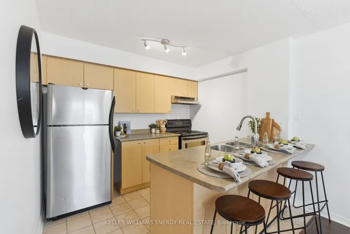 +"PublicRemarks": "Lock the door and live life! First time buyers who want a convenient lifestyle living close to the Lake, 401, schools and shops! Fantastic building offering a fully equipped gym, parkette, party room and on-site management. South facing 1 bedroom, 1 bathroom condo in the sought after Aspen Springs Community. Open concept living and kitchen with breakfast bar overlooking living room with ensuite laundry. Spacious bedroom with walk-in closet. 1 surface parking space within vision of your condo. Professionally cleaned and painted, and bonus with new windows and sliding door waiting."