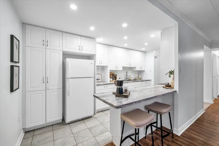 Welcome to this beautifully maintained 3-bedroom, 2-bathroom rarely found ground level condo- nestled in the heart of Pickering! This bright and spacious ground level condo features an open-concept living and dining area, ideal for both everyday living and entertaining. The modern, updated kitchen offers plenty of storage, sleek finishes, and a breakfast bar that overlooks the dining area. Natural light fills every room through large windows, creating a warm and welcoming atmosphere throughout. Carpet free home. Each bedroom offers generous space and ample closet storage, while the primary suite stands out with a double sliding closet and a 3-piece ensuite for added comfort and privacy. Step out from the living room to your private patio, overlooking greenspace on the west side of the building. Conveniently located walking distance to Pickering Town Centre, the rec centre & Library, GO Transit, parks, schools, and 2 minutes from major highways, this home combines modern updates with unbeatable convenience-perfect for families, first-time buyers, or those looking to downsize without compromise. Maintenance fees cover water, Rogers cable & highspeed internet, and common areas.