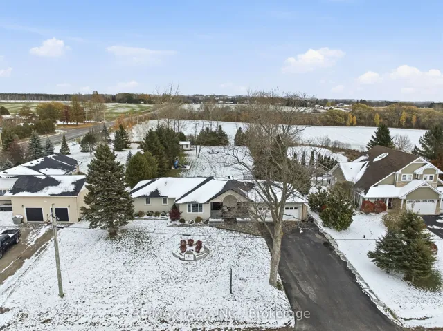 +"PublicRemarks": "Welcome to your next chapter in Orono, where wide open skies meet high-end living. This fully renovated brick bungalow offers 2,013 sq ft of open-concept elegance, all on one level, set on a beautifully landscaped, tree-lined 3/4 -acre lot (0.74 ac) with farmland stretching out both in front and behind. Facing west, the home captures uninterrupted sunset views from the front porch and nearly every room. The exterior features interlock walkways, armour stone accents, a heated double garage, cedar tongue-and groove front entry (2023), and a spacious paved driveway (2022) with parking for six vehicles plus two in the garage. The backyard is designed for memory-making, featuring a large, landscaped patio that's perfect for relaxing, entertaining, or firing up the grill. A hot tub, fire pit, playhouse, and open space for trampolines or soccer nets complete the outdoor experience. Inside, the kitchen features a 6-burner gas stove and a built-in dual-climate wine and beer bar fridge integrated into the quartz island. Engineered hardwood and quartz surfaces run throughout, and all three bathrooms have been professionally renovated to a spa-like standard. The primary ensuite offers heated tile floors, a curbless Riobel shower, a wall-hung toilet, and a lighted niche. A main floor office with French doors and a closet offers flexibility as a fourth bedroom. Additional upgrades include 200-amp copper wiring, PEX plumbing, water softener and RO system, UV filtration (2025), Goodman furnace (2019), hot water tank (2023), and attic insulation (2022). The full-height basement with 9' ceilings is framed, plumbed, and wired, ready for finishing. Once completed, the home would offer over 4,000 sq ft of total living space. Whether you're upsizing, downsizing, or simply craving space and serenity, this home delivers luxury, lifestyle, and lasting value, just outside the city."