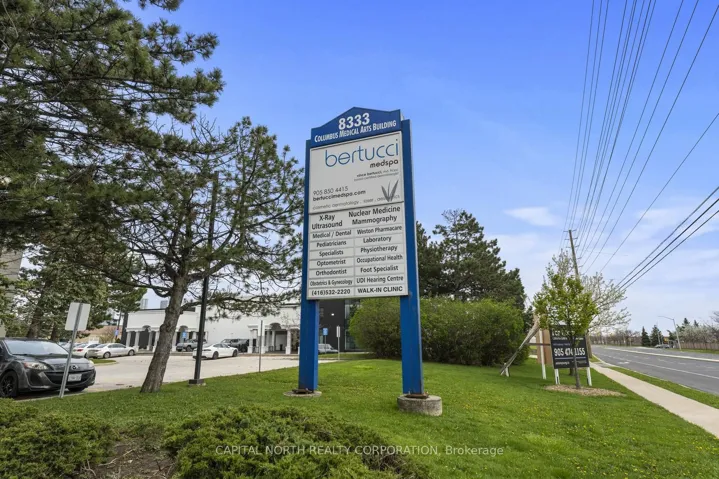+"PublicRemarks": "Attention Medical Practitioners. Move In Ready Unit! Rate Advertised is Net plus TMI for 1,295 sq ft. Still a Net Lease. Welcome to 8333 Weston Rd, a four-story MEDICAL building located on Weston Rd, just and south of Langstaff Rd. This property features newly renovated Doctors Offices, further updates throughout the building, a huge parking lot, and landscaping. The building is home to tenants such as a full-service pharmacy, food service vendors, family doctors and a number of specialists. The location offers easy access to highways 400 and 407, both being just a few minutes drive. Mackenzie Health and Cortellucci Hospital is a 12-minute drive via highway 400. Utilities are included in the TMI."