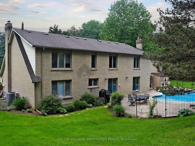 Own your own slice of paradise on 1.15 acres in the prestigious estate community of Woodland Acres! This exquisitely custom-built home has it all! Armour Rock steps in the front entrance leads into the foyer of this immaculately maintained home that features gleaming hardwood floors, foyer featuring 17ft ceiling heights and a beautiful chandelier with a ceiling medallion. The large open concept living room is filled with natural light streaming from a three-panel window and is complete with a Napoleon gas fireplace with marble surround from floor-to-ceiling. The kitchen is every culinary enthusiast’s dream featuring granite countertops, marble backsplash, valence lighting, a six burner gas stove, and a breakfast area with double door access to the pool and outdoor entertainment area! Easily accessed from the kitchen area is welcoming family room with ample room for entertaining family and guests. The main floor office has a quiet charm to it, with hardwood flooring, crown molding, floor-to-ceiling wainscotting and a picturesque window that overlooks the front grounds. The primary bedroom has its own private sitting area, two windows, two ceiling fans, a large walk-in closet, and an ensuite bathroom boasting an oversized vanity, jacuzzi tub, and an enclosed shower. Gather with family and friends in the finished lower level where you will find an impressively large recreation/games room with marble flooring and an open concept design. For the hobbyist, there is also a workshop with work benches and ample storage space in this area. The fully landscaped grounds provides the perfect setting to enjoy warm summer afternoons in your own private oasis. The grounds feature a large inground pool with interlocking stone surround, integrated lighting and ample room for loungers and patio furniture. On the northern side of the lot you will find an abundance of flat table space, ideal for use as a play area or as a hockey rink as the seasons change.