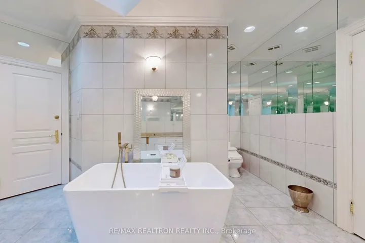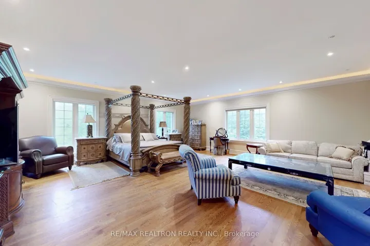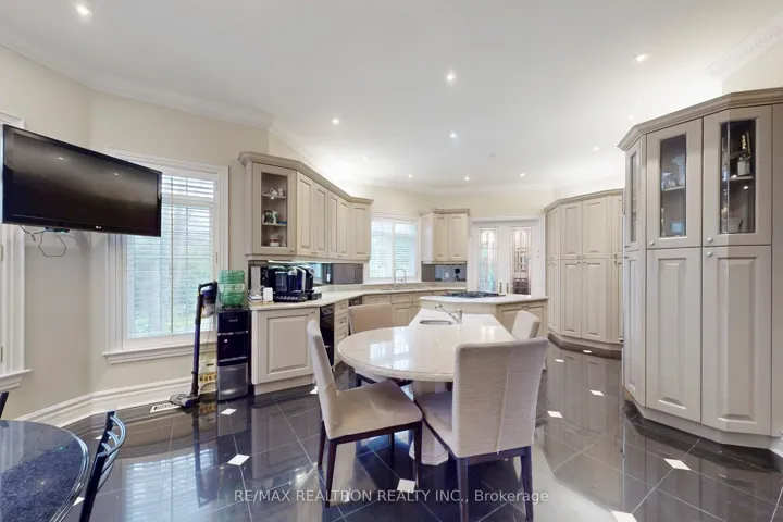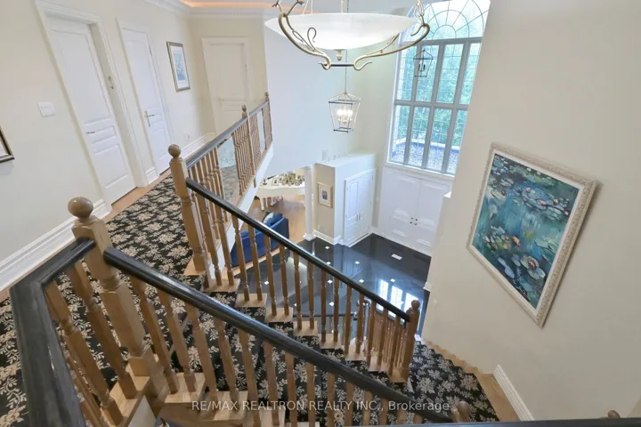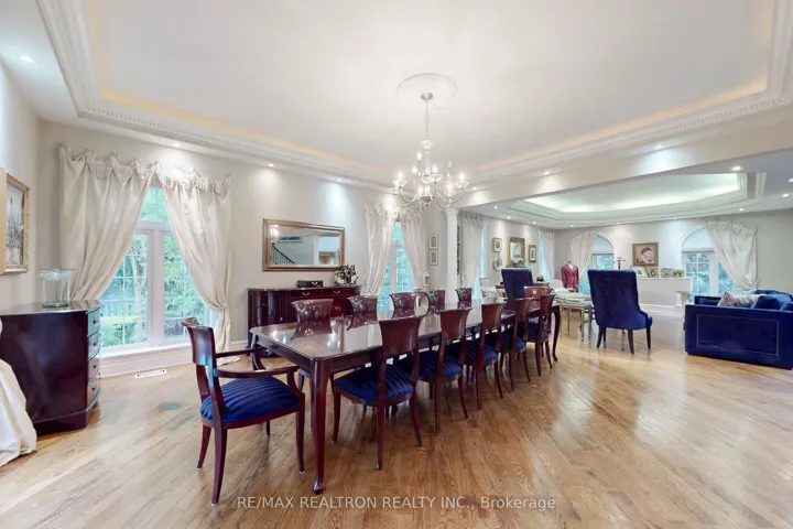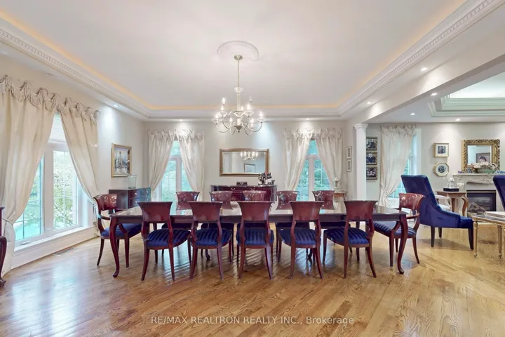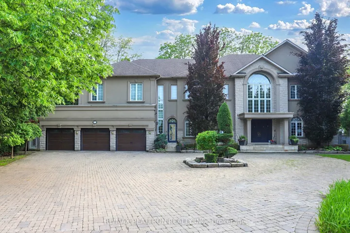 +"PublicRemarks": "Welcome to an exceptional, rare offering on prestigious 'Renaissance Court'- a quiet, private cul-de-sac in Thornhill's most sought-after community. Sitting on a massive pie-shaped lot with over 200 feet of width at the back, this home offers approximately 10,000 sq. ft. of living space (6,650 above grade + 3,141 basement). The sun-filled southwest-facing backyard features a spectacular in-ground swimming pool surrounded by mature trees, creating your own private retreat.This grand residence features 5 spacious bedrooms and 7 bathrooms, with soaring 10'+ ceilings on the main level, a dramatic cathedral foyer, and two main-floor washrooms. A three-car garage, circular interlocked driveway, and a second service staircase provide both elegance and functionality. The expansive layout includes a potential main-floor in-law suite, open-concept living spaces, and quality finishes throughout, including 8' solid doors, granite floors, and a massive chef's kitchen island. Perfect for families, this home is located near top-rated schools, including French Immersion and Arts programs. From the cathedral picture window glass entry-way to the incredible backyard oasis, this home offers an unmatched combination of space, privacy, and luxury-a rare gem on a premium lot thats ideal for entertaining and family living."