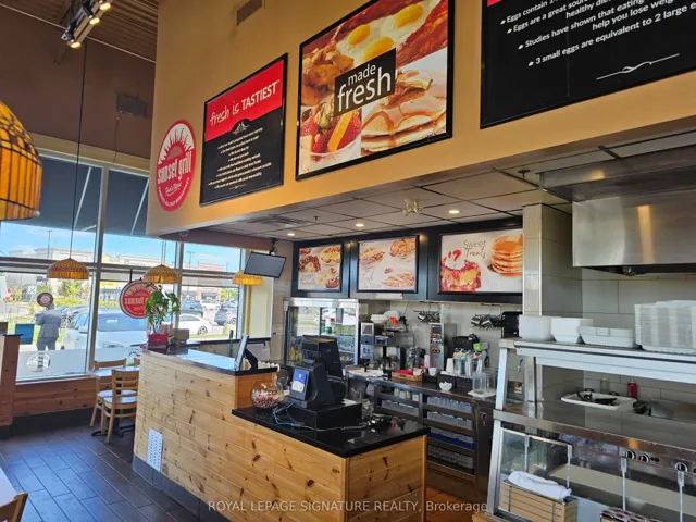 +"PublicRemarks": "Profitable and modern Sunset Grill franchise located in a AAA plaza in Vaughan, just off Highway 400 at Major Mac Kenzie. This 2,112 sq ft restaurant is built to the classic franchise layout and offers seating for 110 in a bright corner location with excellent signage and visibility. The open-concept kitchen is fully equipped with a 14-ft commercial hood and a walk-in fridge. The space is designed for efficiency and consistency, providing a strong foundation for continued success under this well-established breakfast brand. Rent is an attractive $9,734 gross (including TMI) with a solid lease in place offering 2 + 5 + 5 + 5 years remaining. Franchise royalties are 5% + 1%, with training to be provided by head office pending franchisor approval. Please do not go direct or speak to staff."
