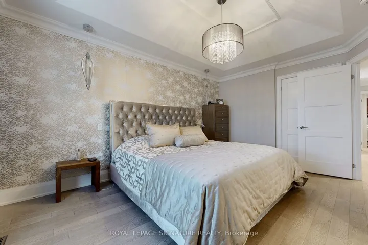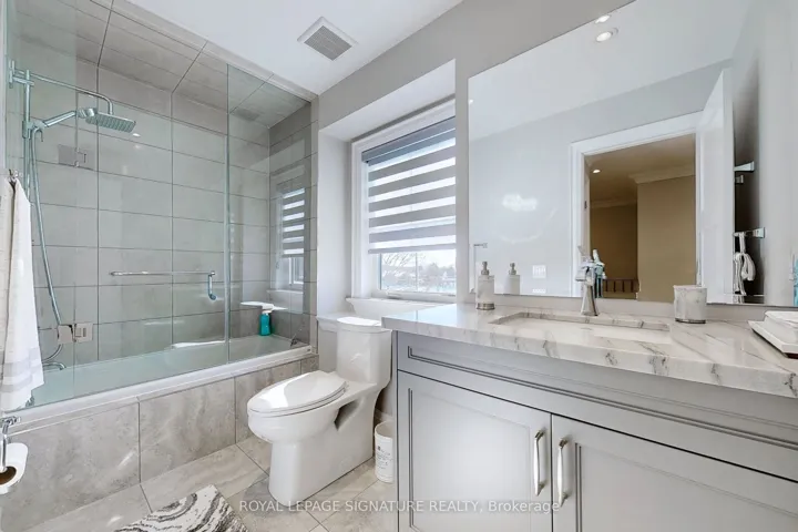 This stunning builders model townhome is a spacious corner unit with a 2-car garage, offering a stylish and functional design with custom upgrades throughout. Located just steps from parks, shopping, the GO Station, Vaughans hospital, a community centre, and a library, this home provides both convenience and modern elegance. Step inside to discover a bright, open-concept family room, with wall-to-wall windows and featuring a custom fireplace accent wall. The elegant dining area is enhanced with coffered ceilings, while the gourmet kitchen boasts quartz countertops, stainless steel appliances, a chic backsplash, a breakfast bar, an eat-in area, and a walkout to a private balcony. With three bedrooms and four upgraded bathrooms, this home is designed for comfort and style. The formal living room offers versatility and can easily function as aguest suite on the ground level or additional entertainment space. Hardwood floors span three levels, complemented by 9-ft ceilings on the main floor, crown mouldings, pot lights, smooth ceilings, and designer lighting. Thoughtful custom-built closet organizers, window coverings, and stylish built-ins add both elegance and practicality. The fully finished basement extends the living space with an open-concept recreation room and a spa-like 3-piece bathroom.