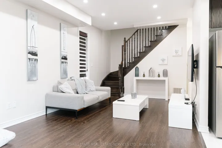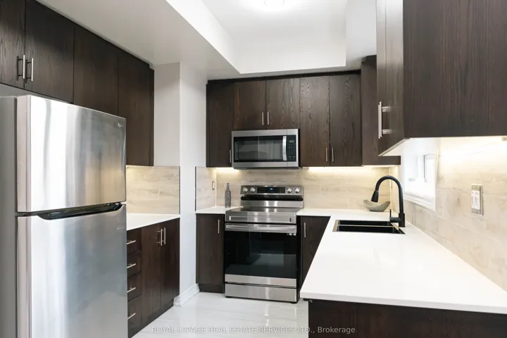 +"PublicRemarks": "Welcome to this modern and stunning end unit condo townhome located at 9621 Jane St, Unit 13. This unit offers upscale living in one of Vaughans most desirable communities. This home is bathed in natural lightand showcases elegant dark tones, designer finishes, and new laminate flooring throughout. Featuring two spacious bedrooms and two fully upgraded bathrooms. The home is designed for comfort and style with oversized windows and custom zebra blinds. The gourmet kitchen is a chefs dream, complete with new stainless-steel appliances, quartz countertops, a double in-mount sink, stone backsplash, and ample cabinetry.The open-concept living and dining area boasts soaring ceilings and a walkout to your own private balcony, perfect for entertaining or relaxing. A beautifully stained oak staircase leads to the upper level, where the oversized primary bedroom impresses with 10 ceilings, a second balcony and a full walk-in closet. Additional features include ensuite laundry and generous storage throughout. This is refined townhouse living at its finest."