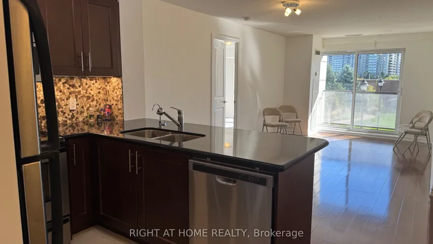 +"PublicRemarks": "Welcome to this Naturally Bright, Well-Maintained and Carpet-Free 2+1 split bedroom, 2-bathroom modern condo unit featuring a spacious open-concept living and dining area. The modern kitchen features a breakfast bar area, granite countertops, stainless steal appliances, trendy backsplash, undermount sink and plenty of cabinet space. Custom built-in cabinetry in the den and the large walk-in closet in the primary room adds an incredible amount of additional storage space in this unit. Unwind after a long day in your very own large south facing 18 foot balcony overlooking the building's courtyard. 2 side by side parking spots and a locker are also included in the lease price. This clean and well-run building offers great amenities which have been recently updated and is conveniently located near shops, medical buildings/hospital, highways, shopping mall, GO Train and public transit at your doorstep. Note: staged photos have been taken from the previous listing, with consent."