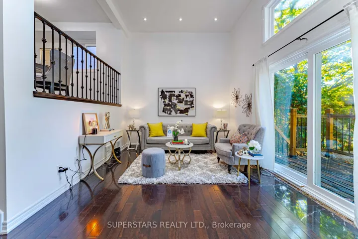 Welcome To This Beautifully Upgraded Home Nestled On A Premium Large Pie-shaped Lot Backing Onto The German Mills Settlers Park, Enjoys An Open, Unobstructed View With No Houses Behind, Ensuring Exceptional Privacy.The Soaring 12Ft Ceiling In The Living Room Creates A Grand, Light-Filled Space With Stunning Park Views Open Dining Area That Overlooks Below. Thoughtful Upgrades Abound, Smooth Ceiling, Hardwood Floor, Iron Picket Railings, Fresh Paint(2024), Pot Lights & Stylish Light Fixtures. The Modern Kitchen Featuring Upgraded Tile Flooring, Quartz Countertop, Stainless Steel Appliances, Backsplash, Center Island With Breakfast Bar, Extended Cabinetry With Under-Cabinet Lighting, And Display Cabinet With Interior Illumination. Upstairs, A Skylight Brightens The Hall Leading To 3 Spacious Bedrooms And 2 Renovated Bathrooms(2024), Including A 3Pc Ensuite In The Primary Bedroom. Finished Basement Offers A Generous Recreation Room Perfect For Entertaining Or Relaxing. Newer Sliding Glass Doors(2021). Interlock Driveway Can Park 3 Cars. Top-Rated Bayview Fairways Public School & St. Robert Catholic High School. Easy Access To Hwy 404 And Public Transit.