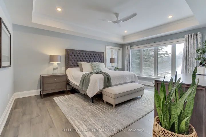 Welcome to 17781 Mc Cowan Road-a custom bungaloft with over 4000 sq/ft of living space set on over 2 acres of private, picturesque land surrounded by mature trees, woodlands, executive estates, and equestrian properties. Ideally located just minutes from Mount Albert and Newmarket, this exceptional home offers the tranquility of country living with easy access to city amenities, including Southlake Hospital, Upper Canada Mall, Main Street Newmarket, big box stores, and Hwy 404.Outdoor enthusiasts will love being steps from the York Region Trail System and a local off-leash dog park. Inside, expansive windows showcase a healthy spring-fed pond with koi and goldfish, flowering trees, and peaceful sunrises.The open-concept main floor is designed for both comfort and elegance, featuring a vaulted-ceiling great room with a striking stone fireplace, a chef-inspired kitchen with custom cabinetry, and a spacious dining area. The main-floor primary suite includes a luxurious 5-piece ensuite and dual closets. A large laundry/mudroom with garage access and a walk-in pantry add convenience.Two additional bedrooms share a stylish 5-piece bathroom and overlook a cozy upper loft/media space. A second separate loft offers a large bedroom or office with a rough-in for a future bathroom-ideal for multigenerational living or working from home.The fully finished walkout basement features a rec room with a wood-burning fireplace, games area, bedroom with 3-piece bath, rough-ins for a sauna and bar, mirrored gym, covered patio and plenty of storage.High-end finishes include hardwood floors, heated tile, pot lights, custom lighting, hardwood staircases, and premium window coverings. This one-of-a-kind home blends luxury with nature-an absolute must-see.