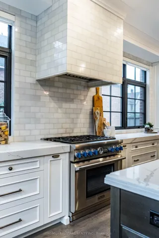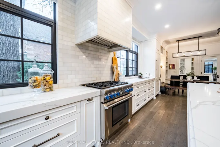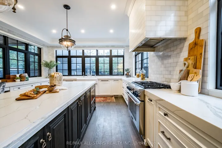 Completely renovated and expanded with a 2-storey (plus basement) addition in 2016. All new roof, electrical, insulation, plumbing, furnace, AC-everything! This home blends timeless character with luxurious contemporary design, offering a lifestyle that’s both sophisticated & inviting. Outdoor spaces are just as impressive with an in-ground saltwater pool (2021) w/ 2 shallow ends, water + fire features and Muskoka granite patio w/ landscape lighting & built-in sprinkler system as well as two private terraces. Inside, wide-plank herringbone oak floors, plaster crown molding, and a stone wood-burning fireplace create warmth and elegance. French doors open to a covered terrace with heated floors, a gas fireplace, built-in BBQ, and hot tub – a true four-season retreat.The spacious eat-in kitchen is the heart of the home, featuring a 10-foot island with double-sided storage, Thermador & Bosch appliances, a handcrafted Shaws sink, and brass accents. Wall-to-wall windows overlook the backyard & covered terrace. A built-in banquette nook offers a cozy space for everyday living. The custom mudroom and laundry area include cabinetry and bench seating, while the chic powder room shines with Perrin & Rowe fixtures and a hammered nickel sink.Upstairs, the primary suite feels like a boutique hotel with a walk-through wardrobe, double vanity, deep soaker tub, and oversized rainfall shower. Two additional bedrooms feature custom closets and elegant lighting. The second-floor terrace offers a private place to unwind.The finished basement includes heated floors, above-grade windows, and a wet bar – perfect for movie nights or entertaining. There is even a laundry chute! A rare bonus – the detached, heated two-storey garage (2020) with loft, pine floors, large window, bathroom rough-in, and full-height basement – ideal for a studio, home office, or guest suite. Too many features to list – see attached feature sheet & watch virtual tour!