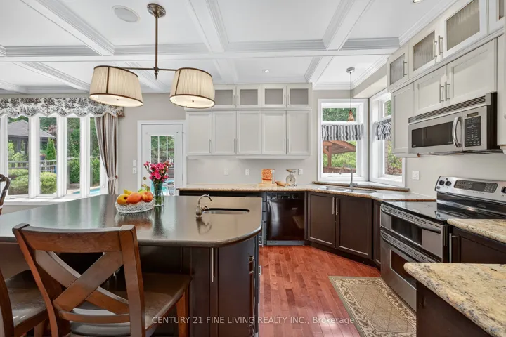 +"PublicRemarks": "Welcome to this beautifully appointed executive stone and stucco home, ideally located in Barries prestigious Ardagh Bluffs community. Backing directly onto the protected 500-acre Ardagh Bluffs Nature Reserve, this property offers the perfect blend of luxury, privacy, and natural beautywith direct access to miles of scenic walking trails right from your backyard. Offering nearly 4,000 square feet of finished living space, including over 3,000 square feet above grade, this home is designed for both comfortable family living and stylish entertaining. The main level features rich hardwood flooring, pot lights, and a bright, open-concept layout. The family room, complete with a gas fireplace, flows seamlessly into the chef-inspired kitchen with stone countertops, stainless steel appliances, a large island with breakfast bar, and a walk-in pantry. Upstairs, youll find four generously sized bedrooms, including a spacious primary suite with upgraded ensuite, huge walk in closet and private office. The fully finished basement includes large 'look-out' windows and a walk-out to the garage, making this ideal for an in-law or nanny suite, or as a private space with income potential. Architectural features like vaulted ceilings, custom built-ins, a main-floor den, and floor-to-ceiling windows make this home truly special. A rare three-car tandem garage and multiple walk-out points add flexibility and function throughout. Step outside into your own private oasis featuring a large in-ground pool, hot tub, pergola, manicured lawns, and multiple stone patios which is an ideal setting for summer entertaining or peaceful evenings at home. With recent upgrades including new flooring and a completely redesigned gourmet kitchen, this home offers the best of modern living in one of Barries most sought-after neighbourhoods."