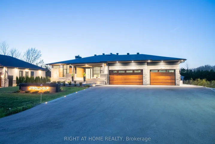 Just about an hour from Toronto, Modern luxury meets lakeside serenity. Welcome to your dream retreat where tranquil living and refined luxury meet in perfect harmony. Custom built in 2023 with uncompromising attention to detail, this extraordinary residence offers approximately 5000 sq ft of exquisitely finished living space, thoughtfully designed for comfort, style, and connection to nature. Step inside and discover a stunning layout featuring 5 spacious bedrooms, 4 spa inspired bathrooms, a private gym, and a resort style sauna and steam room that accommodate up to approximately 12 guests, your personal wellness oasis. Crafted with meticulous precision and premium finishes throughout, this home features top-of-the line appliances, solid core doors with high-end ball bearing hinges, 7 1/4 inch baseboards, custom millwork and cabinetry, triple pane european windows and exterior doors, white oak engineered hardwood and heated marble inspired epoxy flooring, three Napoleon fireplaces total (2 indoor, 1 outdoor), and built in speaker system creating warmth and ambiance throughout. Outdoors the luxury continues with three stylish sitting areas, previously mentioned Napoleon fireplace, a fire pit area, and illuminated concrete walkways. Boasting a 3 car garage that can accomodate a boat or motorized toys, two versatile sheds include built in chicken coop and dog run, while a concrete pad with electrical hook-up awaits your future swim spa. Just steps from the lake and only a few houses from the community boat launch and water access, this home is ideally situated for those who appreciate nature, privacy and premium living. Every element of this property has been carefully curated- no expense spared, no detail overlooked. This is more than a home; it’s a lifestyle. Come experience it for yourself. This is the lakeside luxury you have been waiting for.