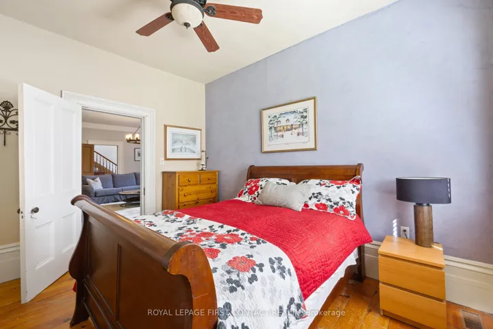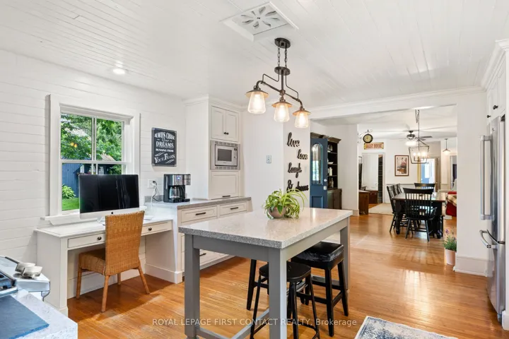 +"PublicRemarks": "A rare find within the City of Barrie - private, treed 1.23 acre lot, backing onto Lover's Creek, in the exclusive lakeside South Shore neighbourhood. A unique piece of history, the home was built in 1860, then relocated & restored to preserve the character in 1988, while modernizing the homes structural components, including plumbing, HVAC, electrical & foundation. This home has continued to undergo extensive renovations since. W/the Marina & walking trails steps away & a short walk to beaches of Kempenfelt Bay, along w/the proximity to Barrie's downtown & GO Train station, this property is the perfect blend of outdoor lifestyle & city conveniences. Step into the impressive front foyer - the craftsmanship of the original staircase, hardwood floors & 16" baseboards. A spacious family/dining area w/a 2-pcs bath, double french doors leading to rear yard & convenient side entrance. The renovated kitchen boasts custom cabinets, stone counters & top of the line built-in appliances, large island & walk-in pantry. Open concept & tastefully restored, perfect for entertaining. The expansive living room features gas fireplace & beautiful, large windows w/tranquil views. On the 2nd level you will find the primary suite w/it's own fireplace, walk-in closet & 5-pcs semi-ensuite boasting a new double vanity, vintage stand alone tub & large walk-in shower. Also on this level - the guest suite, which was the original staff quarters. It offers a private bedroom, 3 pcs bath & bonus space, 2nd floor laundry room, along w/its own staircase to the main level. The basement is finished w/ a rec room, large utility/laundry room, & workshop with bulkhead door access to the yard. A fully fenced backyard has a cottage-like feel w/ an expansive, covered, composite deck, perfect for enjoying a morning coffee or afternoon BBQ while taking in the forest views. The long laneway leads to oversized double car garage w/loft space. Modern conveniences; BI deck heater, BBQ hook up, irrigation system."
