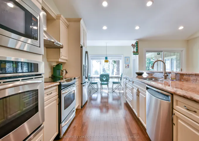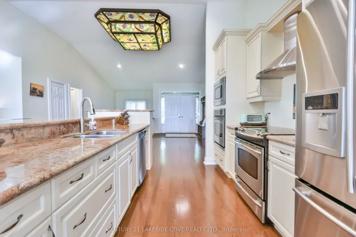 +"PublicRemarks": "Lake Simcoe 5,000 Sq. Ft. Waterfront Bungalow with Breathtaking Southern Views. Welcome to this stunning waterfront bungalow on the shores of Lake Simcoe, offering 100 feet of clean, clear shoreline. This beautifully maintained home features cathedral ceilings and an open-concept layout that seamlessly blends the gourmet kitchen, dining, and living areas perfect for both relaxed family living and stylish entertaining. The kitchen is a chef's dream, complete with granite countertops and a walkout to a spacious stone patio, ideal for family gatherings. The main floor includes 2 generously sized bedrooms, 3 bathrooms, convenient main floor laundry, and inside access from the attached garage. The fully finished lower level offers a spacious rec room with walkout access to the backyard and hot tub, your private retreat for relaxation. This level also includes a large bedroom, a 3-piece bathroom, ample storage, and a versatile bonus room that can serve as a media room, games room, or an additional bedroom for extended guests. Curb appeal abounds with manicured lawns, established low-maintenance gardens, and an inviting presence. Enjoy ultimate privacy, stunning sunsets, and a truly serene lakeside lifestyle. Don't miss this rare opportunity to own a piece of paradise on Lake Simcoe. Bayshore Village is a unique waterfront community located on the eastern shores of Lake Simcoe. Membership includes access to amenities such as golf, saltwater pool, pickle ball and tennis courts, cards, socials and more. ($1,100/2025) BVA & Bell Fibre Member"