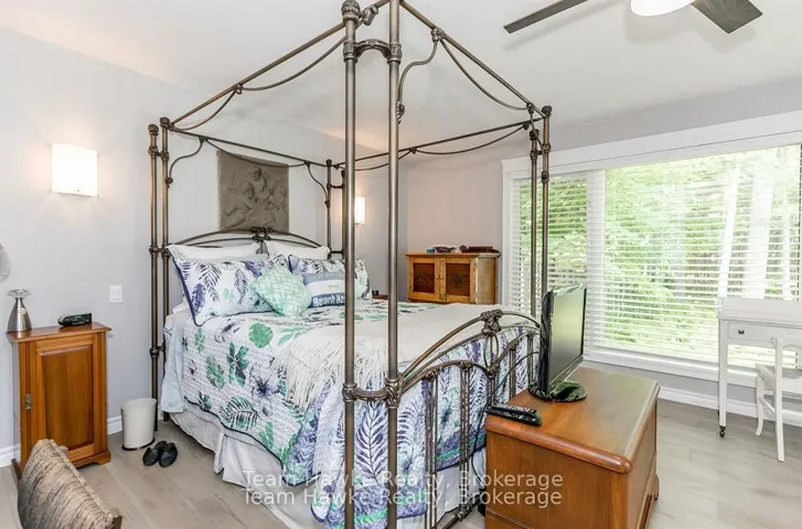 Imagine walking 5 minutes to a private, wide sandy beach in the community of Deanlea Beach, Tiny Township. Your backyard looking into a municipal owned forest. This spacious 4 bed, 3bath bungalow is larger than it looks with almost 2000 sq ft of space on the main floor, including the screened in porch. Renovations in 2014 added a steel roof, new septic, double car garage,primary suite wing and designer kitchen. The open concept living space provides ample room for entertaining and gathering, anchored by a cozy gas fireplace and overlooking a vista of low maintenance, natural gardens and forest. The kitchen is a cook’s dream with extensive granite countertops, an island, lots of storage and stainless appliances. Primary suite includes a walk-in closet for her and double closets for him plus a 4 piece bath and a walkout to the private backyard, where you can enjoy your morning coffee in the gazebo surrounded by the beauty of nature. The lower level has large, bright windows with 2 bedrooms, a 3-piece bath and a large games room, providing plenty of room to host multi-generational gatherings. In-floor radiant heating throughout keeps your feet toasty on chilly days. The extensive interlocking driveway fits 6 vehicles plus an attached double car garage for parking and storage. Quality construction and finishes throughout. High-speed fibre-optic internet makes it easy to work from home. A dry stream riverbed traverses the flagstone path to the front door. Walking down for a stroll on the long sandy beach or to view the spectacular sunsets, who could ask for more? Annual Deanlea Beach Association fee of $75. Annual municipal flat water charge of $1,114.00.