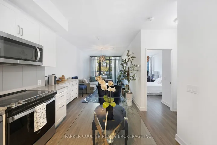 +"PublicRemarks": "This stylish 1 bedroom + den condo is located on the ground floor of a high-quality condo building known for its modern design and solid construction, no need to worry about elevators or stairs. Inside, the open-concept layout brings the kitchen, living, and dining areas together for a bright and roomy feel, great for relaxing or having guests over. Step out onto your balcony through floor-to-ceiling glass doors. The main bedroom is a cozy escape, and the den gives you extra flexibility, perfect as a home office or guest space. The building offers fantastic amenities to make everyday living even better, enjoy a rooftop terrace with lounge areas and barbecues, a party room for hosting, a fully equipped gym, and concierge service. Also, one storage locker and one parking space are included. You're just minutes from restaurants, shopping and grocery options, plus you'll have easy access to the GO Train station. With a mix of comfort, convenience, and style, this condo is a great fit for modern city living."
