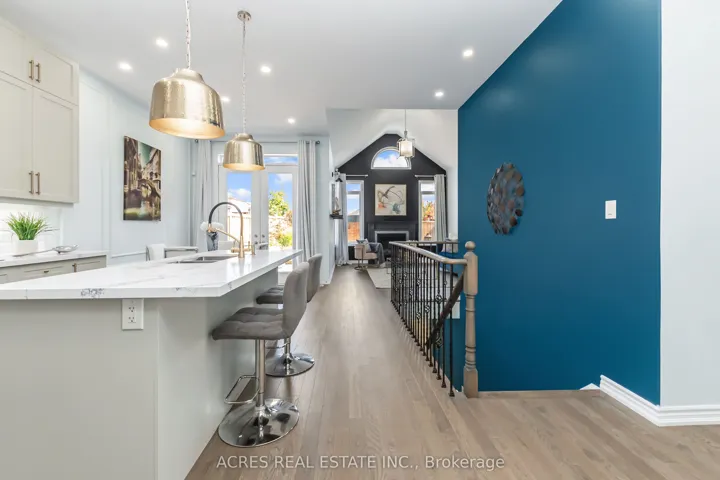 Experience Refined Living in This Exquisite Primrose Model, Thoughtfully Upgraded with Designer Touches Throughout! Nestled on a premium 150-foot deep lot with upgraded stucco and stone exterior, this exceptional home offers modern curb appeal with professionally landscaped grounds. The backyard is an entertainers dream, featuring a built-in gas fireplace, pergola with 120v power, and a spacious patio area perfect for relaxing or hosting. Inside, the main level impresses with soaring vaulted and 10-foot ceilings, oversized doors and windows, smooth ceilings, and top-tier finishes throughout. The gourmet kitchen is a chefs delight, showcasing quartz countertops, built-in stainless steel appliances, induction cooktop, double oven, and warming drawer. The open-concept living area is filled with natural light from expansive windows and features a vaulted ceiling and cozy gas fireplace. Custom bathrooms offer tiled showers and floors, freestanding tub, and stone-topped vanities. The partially finished basement includes oversized windows, an electric fireplace, bathroom rough-ins, and a spacious cold cellar ready for your personal touch. Located on a quiet, no-through street just steps from parks and walking trails, this home perfectly blends elegance, comfort, and convenience. Sold under Power of Sale. Being sold as is, where is