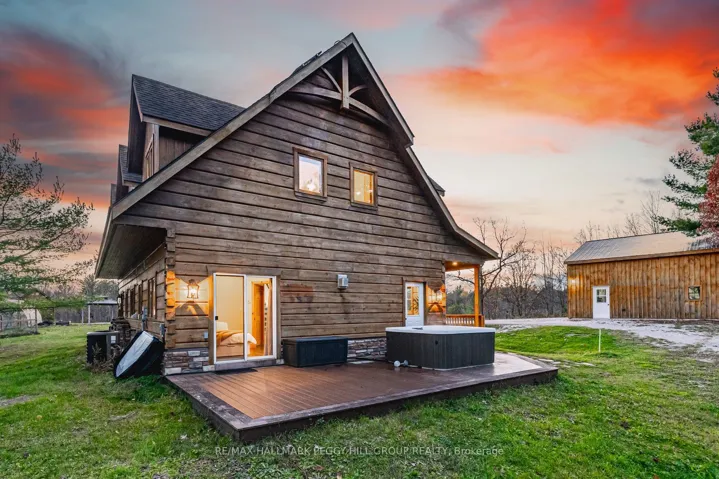 +"PublicRemarks": "100 ACRES OF NATURAL BEAUTY & A LUXURIOUSLY UPDATED LOG HOME WITH OWNED SOLAR PANELS & VERSATILE OUTBUILDINGS INCLUDING AN OVERSIZED HEATED TRIPLE CAR GARAGE, A SAUNA, SHED, 26FT PLANTA METAL GREENHOUSE, CHICKEN COOP, PUMP HOUSE, A HUNT CAMP & BUNKIE WITH A KITCHEN, BATHROOM, HEATING & A/C! Experience true country living in this log home tucked away on 100 acres with ponds, trails, and forest views, offering the ultimate in peace, privacy, and natural beauty. Showcasing timeless rustic charm, this home features a freshly re-stained log exterior and a full-length front porch, perfect for taking in the serene surroundings. Possibilities are endless with the bunkie- ideal for business or rental use and potential for severance (subject to township approval). Outdoor living shines with a sauna, hot tub, chicken coop, fruit trees, garden beds, and a summer gazebo for unwinding in the fresh air. The main level features a cozy family room with a propane fireplace, two bedrooms with walkouts including a luxurious primary suite with a 5-piece ensuite, a 3-piece bathroom with heated floors, and a flexible office space. The upper level boasts vaulted ceilings, engineered hardwood, and an open-concept kitchen and dining area with quartz counters, tile backsplash, a large island, and stainless steel appliances. The great room features a wood fireplace, statement windows, and a balcony walkout with forest views, plus an additional bedroom and a renovated 5-piece bath. Recent upgrades include fresh interior paint, LED lighting, refinished stairs, newer door hardware, efficient windows, central vac, and a water filtration system. A solar panel system with battery backup and generator hookups ensures dependable off-grid capability, while newly added Bell Fibe internet keeps you seamlessly connected. Discover the ultimate retreat where luxury, modern comfort, and nature unite in perfect harmony, creating a truly exceptional #Home To Stay."