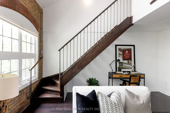 +"PublicRemarks": "Welcome to the Historic Foundry Lofts! This stunning two-storey, two-bedroom, two-bath residence is flooded with natural light and brimming with character. Set within the historic Foundry building, this sun-drenched unit features soaring ceilings, grand archways, and original exposed brickwork that lend a dramatic and unique charm to the living space. Freshly painted and move-in ready, the open-concept main floor boasts rich hardwood floors, a beautifully renovated kitchen with granite countertops, custom cabinetry, and a breakfast island, perfect for everyday living and entertaining alike. The spacious living and dining areas are framed by oversized windows that showcase the buildings industrial heritage. A powder room and in-suite laundry are conveniently located on the main level. Upstairs, you'll find two generously sized bedrooms and a modern four-piece bathroom. The second bedroom features a vaulted ceiling, adding architectural interest and an airy, open feel. One underground parking space and one locker are included, with ample indoor visitor parking available. Residents enjoy access to an incredible 6,000 sq. ft. indoor atrium-style courtyard with Wi-Fi and lounge seating, along with a full suite of amenities including a gym, party room, conference room, and movie theatre. Located in a thriving neighbourhood, you're just steps to Geary Avenue, The Junction, and St. Clair West. Enjoy the convenience of Balzacs Coffee, Cheffreys Restaurant, Aisle 24, and nearby grocery stores, plus excellent schools and public transit right outside your door. CASH INCENTIVE - $1000 to Co-op Agent who can bring an accepted offer by July 31st."