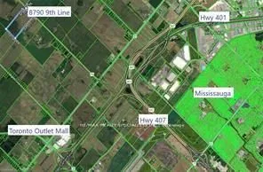 +"PublicRemarks": "51 acre farm with the view of city skyline: Square One/Mississauga high rises are clearly seen! Located 2km from Mississauga's border, 2 km from Toronto Outlet Mall, and 1 km from the junction of three highways: Hwy 401, hwy 407 and future approved highway 413. 9th Line will be widened to 4 lanes + sidewalk + bike path in very near future. This is main artery leading to Georgetown. This land is not frozen, as Hwy 413 will veer EAST from the junction of hwy 401/407. Major builders own adjacent tracts of land. Prologis commercial structure was just launched! Manicured front lawn leads to a sprawling brick bungalow with two legal residences: newer south side residence sports a double garage, mud room/laundry room with walk out to deck, very large white country eat-in kitchen with cathedral ceilings, master bedroom with spacious semi ensuite bathroom with jetted bathtub and separate shower. Two more bedrooms. Northside residence has a huge country kitchen, living room with cathedral ceilings and two bedrooms. Beautiful covered porch and a double garage. Ample parking. Large deck and back gardens overlooking farmland and wood stand. Landscaped garden surrounds both houses. There is a saloon themed summer bar in the shade of tree stand. 2000 S.F. shop provides room for business or additional garages. Two new oil tanks in 2016. Well water is plentiful thanks to an underground aquifer to the north at 5th SDRD. Land bankers, investors park your $$$. Farmland is rented to gentleman farmer for soybeans and corn. Both houses rented. If you are looking to build a family compound of unrestricted size and grow your own organic food, while living right in between Mississauga, Oakville, Milton and Georgetown and THREE major highways then you have found the best place ever!"