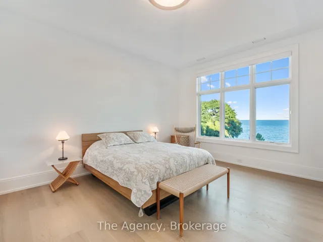 +"PublicRemarks": "The Haven. A rare waterfront estate on a private laneway in South Burlington. Set on nearly of an acre with 103 ft of shoreline and full riparian rights, this property offers privacy, direct lake access, 11,417 Sq ft of living space and a lifestyle that feels like a luxury resort without leaving home. Inside, the lake takes centre stage. Floor to ceiling windows in the great room frame the view, anchored by 22-foot ceilings, a dramatic full-height stone fireplace, and a skylight that floods the space with light. A second living room provides another place to unwind, while a private office with 18-foot beamed ceilings and a stone feature wall inspires focus. Designed by architect David Small and built by Rock Cliff Custom Homes, this home is a masterclass in craftsmanship and elegance. Details like radiant heated floors throughout and a heated driveway ensure year-round comfort. Three outdoor terraces extend the living space. One includes a full outdoor kitchen with built-in BBQ, fridge, and bar sink; another is heated and screened for cooler nights. An additional custom stone patio sits at the waters edge. The backyard is a showstopper. An infinity edge pool appears to spill into the lake, while a private tennis court adds to the resort feel. Inside the kitchen features a large quartz island, Sub- Zero, Miele, and Wolf appliances, and custom cabinetry. A generous mudroom and main-floor laundry offer everyday function. Upstairs are four bedrooms, each with its own ensuite. The primary suite enjoys panoramic lake views, a spa-like ensuite, and a custom dressing room with center island. A second laundry room is also on this level. The walk-out lower level includes a lounge and bar, wine cellar, golf simulator, gym with lake views, sauna, tiered theatre, guest suite, and 3 additional bathrooms. An oversized 4-car tandem garage completes the home. Just minutes to downtown Burlington and a short drive to Toronto and Niagara, this is lakeside living without compromise."