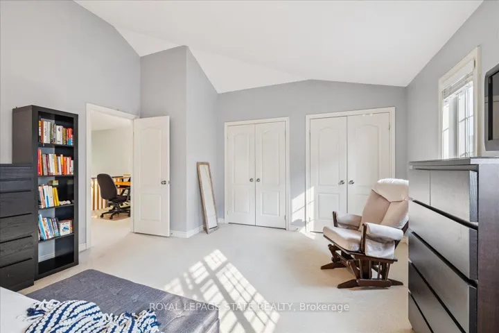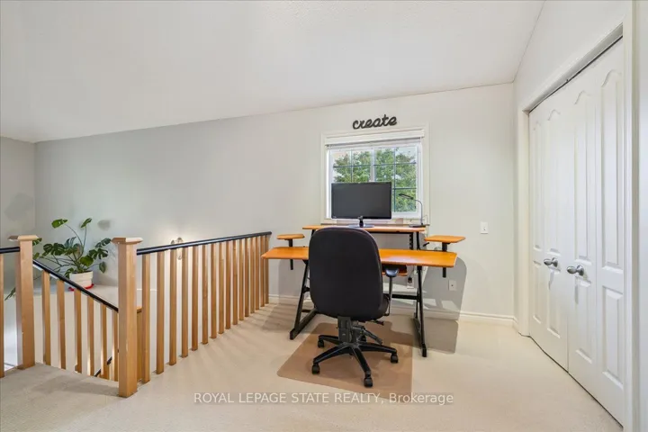 +"PublicRemarks": "Welcome to Unit 72 at 5080 Fairview Streetan exceptional 2-bedroom, 2-bathroom end-unit freehold townhome with a versatile den/office space, located in Burlingtons desirable Pinedale community. Bright and functional, the open-concept main floor features 9-ft ceilings, hardwood flooring, a cozy gas fireplace, and a welcoming layout. The eat-in kitchen is equipped with stainless steel appliances, peninsula seating, a pantry, and a bay window with built-in bench storageperfect for casual dining and added functionality. Walk out from the living/dining area to a private, low-maintenance backyardperfect for relaxing or entertaining. Upstairs, discover 2 generous bedrooms with vaulted ceilings, a 4-piece bath, a large primary suite with his-and-hers closets and den/office space. Enjoy the convenience of an insulated garage, powder room at the entry, and ample storage. With a striking 18-ft ceiling in the foyer, this home is filled with natural light and character. Situated across from the Appleby GO Station and just minutes to the QEW, top-rated schools, shopping, parks, trails, and the lakethis home is ideal for families, commuters, or investors alike. Freehold ownership with a low monthly fee of $179.41 covering snow removal and lawn care. This is easy, low-maintenance living in one of Burlingtons most connected and family-friendly neighbourhoods!"