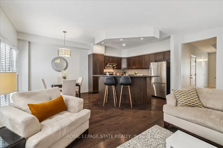 +"PublicRemarks": "spacious 2 Story freehold Townhouse. This townhouse features 3 Bedrooms, 4 Washrooms, with 9'Ceilings on the Main Floor, 9' ceilings in the Finished Basement and 9' high tray ceiling in the Master bedroom. The master bedroom has a large walk-in closet & 4pc en-suite with a stunning freestanding tub & glass shower. The Main Level With A Beautiful Eat-In Kitchen And A Great Room With A Fireplace And Huge Windows. The main floor has a Modern and spacious open concept kitchen with Upgraded Kitchen cabinets with quartz countertops and backsplash. Oak Stairs, The laundry is located very conveniently on the 2nd floor. The finished basement also offers a full 3Pc Washroom with a Standing Shower. Basement space can be used as a 4th Bedroom or Family Room, and has lots of storage space in the furnace room. This home is steps away from a large park & conveniently located within walking distance to Elementary public and catholic schools, close to all the amenities."