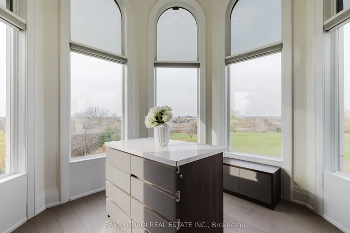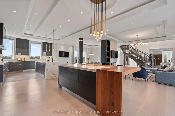 +"PublicRemarks": "Welcome To 4 St. Lukes Court, A Breathtaking 13,000+ Sq. Ft. Estate Set On Two Pristine Acres With Scenic Ravine Views, Nestled In The Prestigious Castlemore Estates Neighbourhood. This Modern Victorian-Inspired Masterpiece Combines Timeless Architecture With State-Of-The-Art Luxury, Showcasing A Grand Stone Exterior, Soaring Turret Towers And A Dramatic Double Staircase Beneath 22 ft. Ceilings. At The Heart Of The Home Lies A Stunning Chefs Kitchen, Featuring Dual Waterfall Islands, Top-Tier Wolf And Miele Appliances, And A Separate Spice Kitchen Offering Both Beauty And Functionality For Everyday Living And Exceptional Entertaining. The Upper Level Boasts Five Spacious Bedrooms, Including Three Stunning Primary Suites With Spa-Like Ensuites, Private Balconies, And A Turreted Lounge. The Above-Ground Lower Level Offers A Legal Two-Bedroom In-Law Suite, Home Theatre, Gym, Sauna, And Entertainment Lounges With Full Kitchen And Bar. Complemented By Sun-Filled Spaces Enhanced With Opulent Finishes Throughout, Each Level Seamlessly Accessible By A Custom Elevator For Seamless Accessibility. Featuring A Five-Car Garage, Grand Fountain Courtyard, Expansive Deck, And Meticulously Landscaped Grounds, This One-Of-A-Kind Estate Is A Must See!"