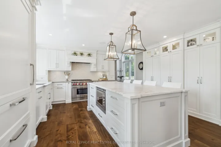 +"PublicRemarks": "Exquisite and reminiscent of New England charm, this lofted bungalow offers breathtaking views and unmatched privacy along Oakville's tranquil 16 Mile Creek. A testament to craftsmanship and design, this waterfront retreat boasts exclusive riparian rights and a private dock, inviting you to embrace the beauty of Oakville's scenic waterways year-round. In winter, skate or ski on the frozen creek or admire the snowy landscape from your sun-drenched living room. In summer, swim, fish, paddle to Oakville Harbour, or relax by the water, this home offers the feel of Muskoka, right in the city. A meticulous 2016 renovation elevated this residence with rich hand-scraped oak floors, solid wood doors, custom millwork, and elegant tray ceilings. The sprawling 1,700 sq. ft. premium Wolf PVC deck includes a hot tub oasis, integrated fire table, and motorized awnings, leading to a dock with a kayak launch, swim ladder, and floating dock. Glass-encased staircases on helical piers deliver striking architectural presence and unbroken sight lines to the creek. Inside, sophistication defines every detail. Floor-to-ceiling windows in the living room frame stunning ravine views and dramatic sunsets, while a gas fireplace with a live-edge mantel adds warmth. The chef's kitchen impresses with a leathered Taj Mahal quartzite island, Wolf and Miele appliances, and an integrated Sub-Zero fridge. Heated floors run throughout, including in the spa-like primary ensuite with marble floors, a rain shower, and double vanity. The lower level offers a linear fireplace, built-in bar, and walkout to the deck. A concrete-lined storage room playfully known as the Bomb Shelter provides additional functionality. Blending natural beauty, refined design, and year-round outdoor living, this one-of-a-kind property is just steps to downtown Oakville and the GO Train offering luxury, serenity, and convenience in equal measure."