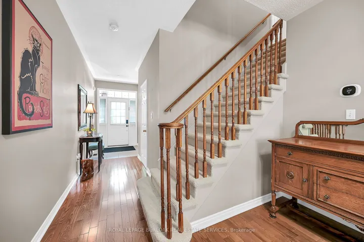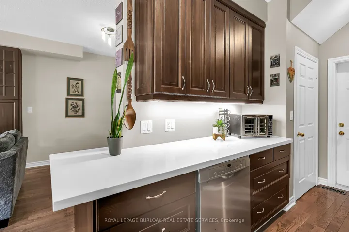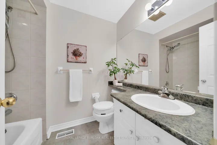 This beautifully maintained home offers an open-concept main level with hardwood floors, a modern kitchen with quartz countertops, a spacious living/dining area with custom-built entertainment unit . Sliding glass doors lead to a private deck and ground level patio overlooking green space. Upstairs, three generous bedrooms, complete with ceiling fans, and a primary suite with a walk-in closet, a double closet, and 4 piece ensuite. There is also a double linen closet for extra storage. The finished basement adds a versatile bonus room for a home gym/ teen suite/guest suite with private full bathroom. California shutters throughout add style, and inside entrance from garage adds convenience. The location in Wedgewood Creek provides trails, parks, a Community Centre, and top rated primary and high schools. Quick access to the QEW, 403, and GO station ensure easy commuting. This turnkey home is a rare gem in a vibrant, yet private, community. Make it yours!