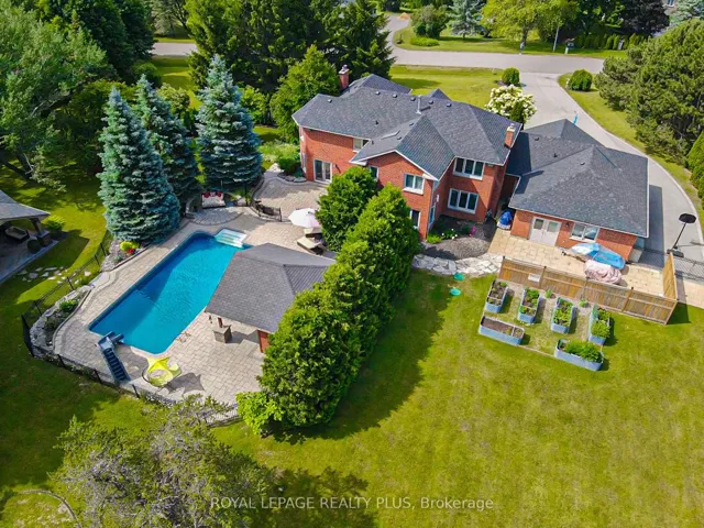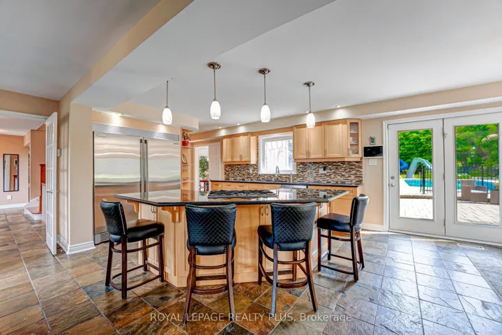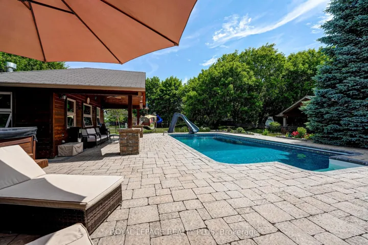 +"PublicRemarks": "A rare opportunity to own an elegant estate with sweeping views of the Toronto skyline. Nestled on a beautifully landscaped, fully fenced lot, this remarkable property offers ultimate privacy and luxury. The grounds feature a saltwater pool with a dedicated pool house, an expansive covered outdoor pavilion with cathedral ceiling, fireplace, and theatre, plus a wood sauna, large workshop, and a long, gated driveway. Mature trees, iron fencing, and curated gardens create a truly serene setting. Inside, the home showcases refined living with generous principal rooms, stunning sightlines, and an open-concept design that blends seamlessly with the outdoors. The upper level offers four spacious bedrooms, including a serene primary suite complete with a walk-in closet and spa-inspired ensuite. The lower level is a warm, inviting retreat with entertaining space and a home office. A property of this scale, setting, and versatility is an exceptional offering just beyond the city."