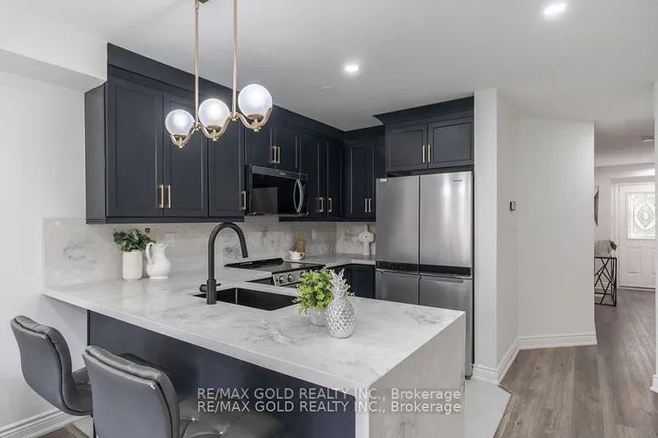 +"PublicRemarks": "Stunning Fully Renovated Freehold Townhome In Sought-After Georgetown Location. Over $90,000 In Recent Renovations Offering Modern Finishes And Move-In Ready Comfort. Bright And Open Main Level Features A Gorgeous Quartz Kitchen With Stylish Backsplash, Sleek Waterfall Island, Ample Cabinetry, Pot Lights, Fresh Paint, And Brand New Laminate Flooring Throughout. Upper Level Showcases A Semi Ensuite Updated Bathroom With New Vanity, Countertop, And A Tiled Shower Providing A Touch Of Elegance To Everyday Living. Finished Basement Offers Additional Living Space Complete With A Cozy Electric Fireplace, Perfect For A Family Room Or Recreational Space. This Turnkey Property Combines Functionality With Quality Upgrades And Is Ideally Situated Close To Schools, Parks, Shopping, And Transit. A True Gem Ready For Its Next Owner."