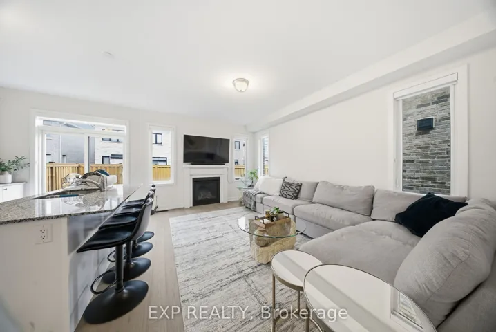 +"PublicRemarks": "Welcome to this stunning and beautifully upgraded 3-bedroom, 3-bathroom home, located in one of Milton's most desirable neighbourhoods. Less than 2 years old, this home offers a perfect blend of modern style, comfort, and convenience. Ideal for young families or anyone looking for a move-in ready home in a welcoming neighbourhood.Step inside and be greeted by a bright, open-concept main floor featuring over $25,000 in builder upgrades. The spacious living and dining areas include rich hardwood flooring, a cozy gas fireplace, and large windows that fill the space with natural light. The kitchen is beautifully finished with stainless steel Samsung appliances, sleek cabinetry, and granite countertops.  Upstairs, the primary suite includes a relaxing 5-piece ensuite with a frameless glass shower, soaker tub, and walk-in closet. Two additional bedrooms provide plenty of space for children, guests, or a home office. The home also features modern zebra blinds throughout, adding a stylish finishing touch.Enjoy the convenience of an second-floor laundry, and a location that truly supports family living - just steps from parks, schools, shopping, and everyday amenities.Move right in and start making memories in this modern, comfortable, and perfectly located home!"