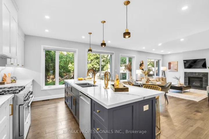+"PublicRemarks": "Extensively renovated and rebuilt in 2022, this custom 2-storey home blends modern design, functional spaces, and over 3,500 sq ft of thoughtfully planned living. Sunlight fills the interior through large windows and a second-floor skylight, enhancing the warmth of hardwood floors and pot lights throughout. At its heart, the spacious kitchen features stainless steel appliances, an oversized stone island, and a butlers pantry connecting to the dining room, perfect for hosting holiday dinners or enjoying slow Sunday mornings. A conveniently located powder room adds practicality, while the inviting living room with fireplace sets the stage for cozy nights in. Step out to the backyard deck, ideal for summer barbecues and evening conversations. Upstairs, the primary suite offers a spa-like 5-piece ensuite and walk-in closet. Two additional bedrooms, each with dual closets and study nooks, provide versatile spaces for school or work. A convenient second-floor laundry room and an additional hookup in the basement add flexibility for busy households. The finished basement extends the homes functionality with a kitchenette and two additional bedrooms, including one with its own 3piece ensuite, ideal for extended family, guests, or a private office. Located in central Etobicoke, this home sits in a family-friendly neighborhood with top-rated schools, including Michael Power High School, as well as parks, shopping, and local amenities. Centennial Park, major highways (427 & 401), and Pearson Airport are all just minutes away, offering the perfect balance of lifestyle and location."