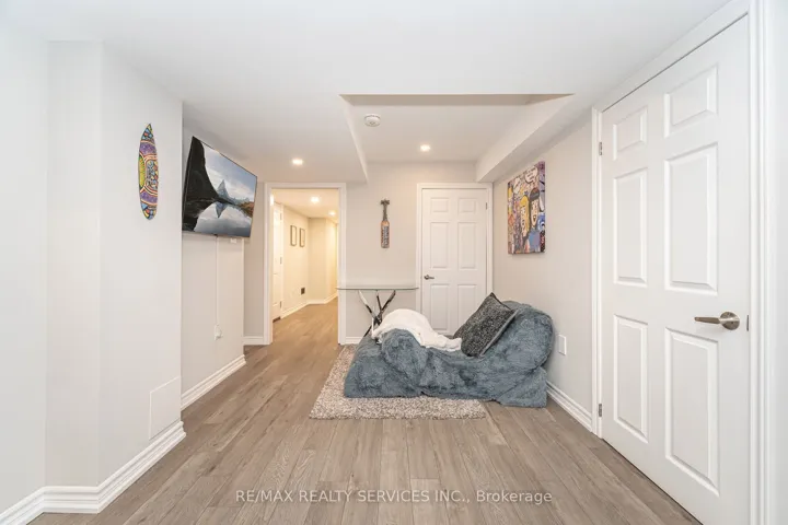 +"PublicRemarks": "Truly a Show Stopper! This 4+1 bedroom, 4 bathroom executive end-unit freehold townhouse is perfectly situated on a quiet, family-friendly street in the heart of L7A. Boasting over 2,200 sq. ft. above grade plus a professionally finished basement, this home combines space, style, and functionality for modern living. Enjoy a separate living room, a family and dining combination (great room), and a well-designed open-concept layout ideal for entertaining. The family-size kitchen features an eat-in area, stainless steel appliances, and ample cabinetry. The primary bedroom includes a walk-in closet and a 5-piece ensuite for your comfort. All bedrooms are generously sized, and the second floor offers a dedicated office space perfect for working from home. The professionally finished basement features an open-concept bedroom, gym area, 3 pc bathroom and play zone, providing additional living flexibility. Outside, enjoy beautifully landscaped front and backyard spaces, perfect for relaxing or hosting gatherings. Additional highlights include double-door entry, upgraded finishes throughout, and pride of ownership in every detail. This home truly has it all must be seen to be appreciated!"