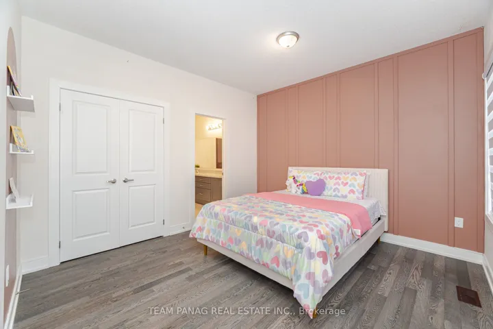 +"PublicRemarks": "Welcome to this newly built 5-bedroom, 4-bath, 6 car parking detached with no neighbors in the back in the prestigious Credit Ridge community! Boasting hardwood flooring throughout and 9-ft ceilings on the 2nd floor, this home combines luxury and functionality. The main floor offers a bright living/dining combo, a gourmet kitchen with built-in S/S appliances, a range top stove, tile flooring, extended cabinetry, and a breakfast area with large windows. The cozy family room features a fireplace, and the main-floor office can easily convert to a 6th bedroom. Upstairs, the primary bedroom includes a 5-pc ensuite and W/I closet; 2nd & 3rd share a 4  pc Jack & Jill bath, while 4th & 5th share a 3-pc bath. Convenient 2nd-floor laundry. Builder-built side entrance and rear basement entrance. Large backyard perfect for summer gatherings. Close to schools, highways & plazas."