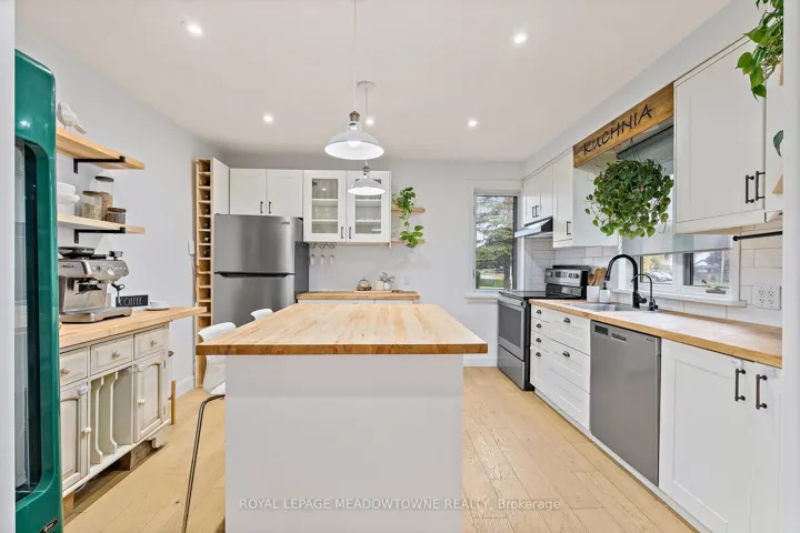 +"PublicRemarks": "Steps to fairy Lake in popular family friendly desirable neighborhood! Beautifully updated four bedroom with potential for a fifth bedroom in loft space. One of a kind floor plan with fabulous open concept design, showcasing stunning hardwood floors and neutral decor throughout. The kitchen features a large centre island/breakfast bar with spalted maple countertops plus stainless steel appliances. The living/dining room is large and overlooks the very spacious family room boasting a pretty fireplace (2024) and views of the backyard. There are four bedrooms on the second level and a fifth room in the loft space, which is currently used as an office/den but could easily be a fifth bedroom. Both full bathrooms have been beautifully updated. The garden beds have all been done plus the yard is huge with room for your fire pit, gazebo (2024), patio, 20x12 garage style shed and still tons of space to play. There is a single car garage plus a double wide driveway for lots of room for your vehicles. Shingles 2021, Furnace and air conditioning 2019, many updated windows and eaves are 2018, front walkway and back patio 2023. One of the prettiest and most popular neighbourhoods in Acton with maturity and Lake access!"