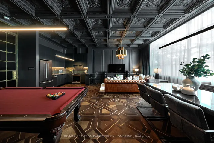 +"PublicRemarks": "Welcome to THE 116, modest on paper, until you remember the 400+ sq. ft. private rooftop waiting upstairs. A bold fusion of luxury and imagination, where Renaissance meets raw industrial edge. The result? Deliberate open-concept living: one bedroom, one bath, zero compromises. No second bedroom you'll never use. No second bath you'll never clean. Just one vast, hotel-grade canvas you can actually live in. Enter the Great Room through the 500 lb brass door and marvel at the 11-foot coffered ceilings - the kind architects sketch once and never repeat. Dark-paneled walls wrap you with quiet luxury. Underfoot, historical parquet flooring evokes timeless sophistication, laid in patterns you won't find in any other unit, period. Have a drink at the bar, which curves from floor to ceiling - because every home deserves a proper drink station. Soaring windows flood the suite with light that makes every hour look curated. Designed with intention, the space flows effortlessly between kitchen, dining, living, and entertaining. Stunning built-ins are featured throughout, clearly designed by someone who never lost a game of Tetris. Heated en-suite floors mean warm feet every morning. Entertain on the rooftop terrace, equipped with built-in gas line and BBQ, and take in the sweeping views of the downtown skyline and CN Tower. Minutes from public transit (Eglinton LRT), with easy access to the 401, parks, shops, and restaurants. Furry friends welcome (they'll love the direct access to the York Beltline just as much as you do). This is the part where you text your agent."