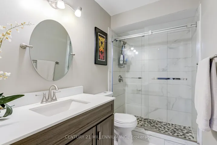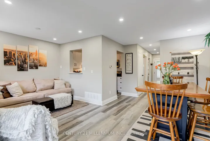+"PublicRemarks": "Welcome to 3 Orange Mill Court-a stylish and thoughtfully updated home in a well-kept, family-friendly complex. Unlike most units of its age, it offers rare perks like forced air gas heating, central A/C, and a main floor 2-piece powder room. A flexible front room adds versatility, perfect as a 4th bedroom, office, den, or formal living space. The kitchen features white cabinetry, quartz countertops, and stainless steel appliances, while luxury vinyl flooring and tall 5" baseboards elevate the main level. Enjoy open-concept living and dining with access to a fenced yard and gate to a shared green space. Upstairs offers 3 bright bedrooms and a renovated 3-piece bath with a glass shower. The finished basement includes dry-core subflooring, pot lights, built-ins, and a cozy rec room. Updates include all new windows (2020) and a new modern front door. The complex offers ample visitor parking and a private playground. Located close to parks, schools, and amenities, this is a rare opportunity!"